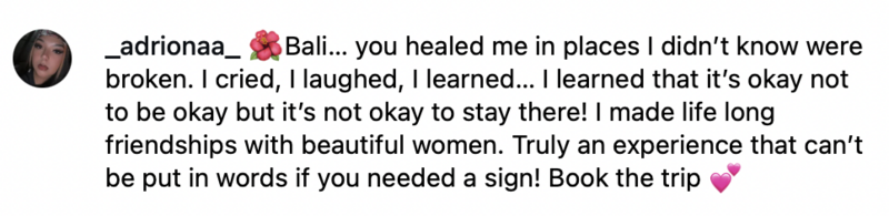 This is your retreat, your way. Use your space to relax solo, bond with your new sisters and soak in Bali’s beauty.